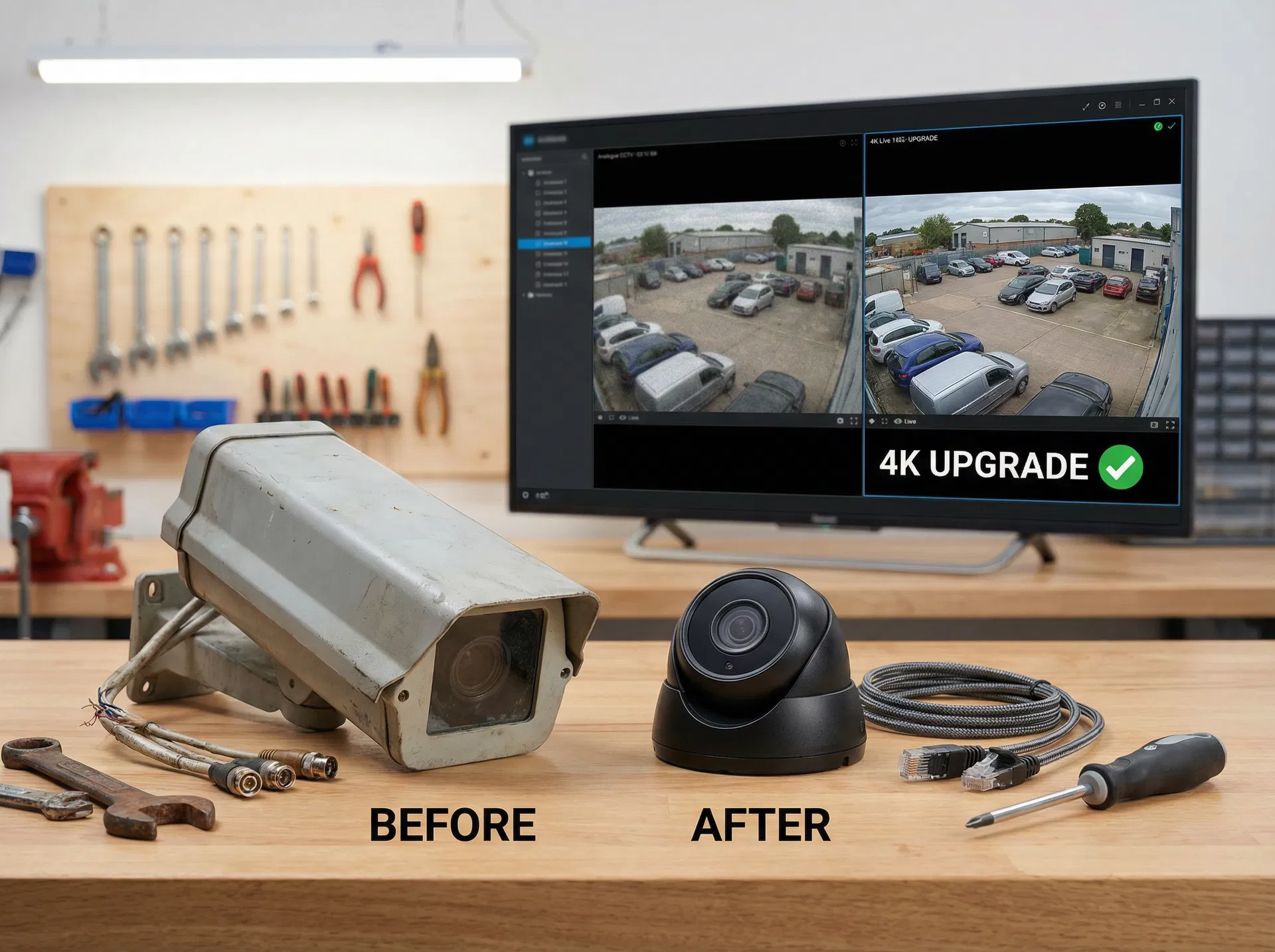 One of our most common upgrades is converting analogue CCTV systems to modern IP cameras. This typically provides a dramatic improvement in image quality, adds remote viewing capability, and often allows reuse of existing cabling to keep costs manageable.